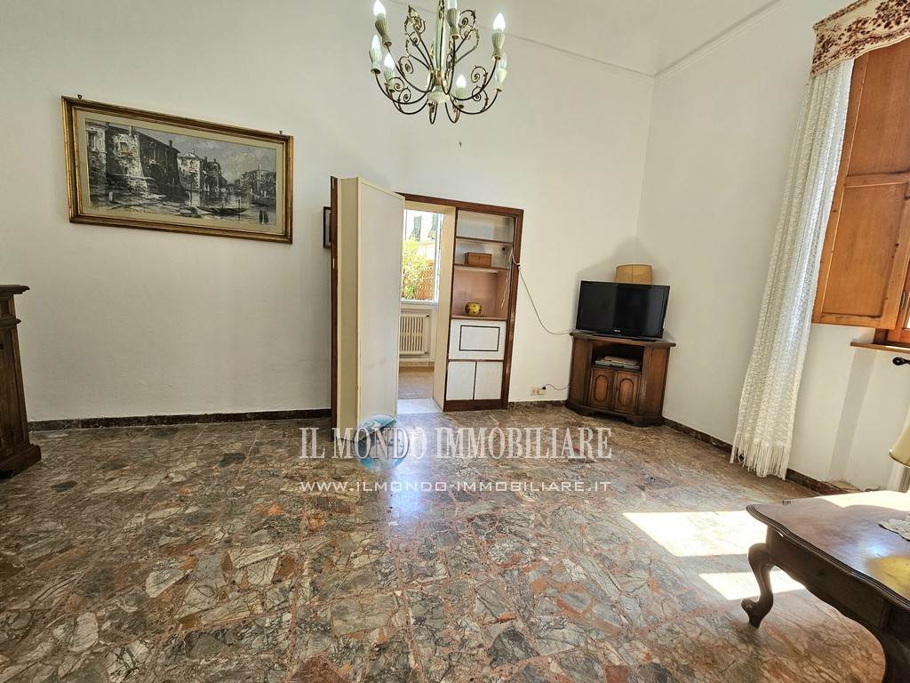 SAN SALVI In terratetto bifamiliare anni ‘20, appartamento di circa 100 mq con giardino carrabile, posto auto garage e oltre due stanze al seminterrato. L’immobile ha tre ingressi indipendenti, dal terratetto, dal giardino e dal garage. L’appartamento è composto da: ingresso, soggiorno, cucina abitabile, 2 camere, una piccola stanza pluriuso finestrata, 2 servizi oltre 2 vani al seminterrato. Termosingolo. Libero subito.